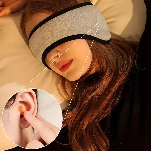 Our sleep mask comes with silicone earmuffs to completely block out the rest of the world. They fit snugly in the ear canal without irritating the skin.