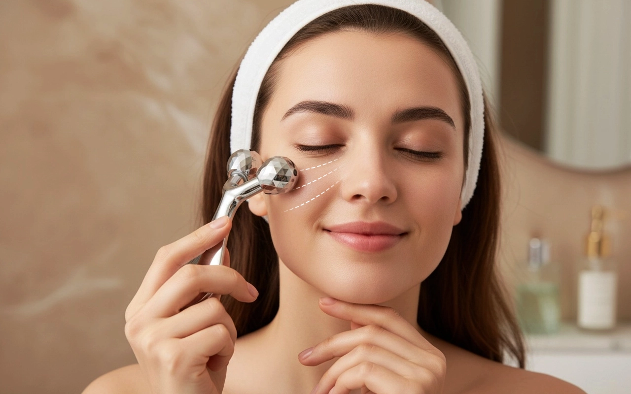 Cool stainless steel helps calm puffiness fast. Relief for tired eyes and skin comes quickly after gentle rolling.