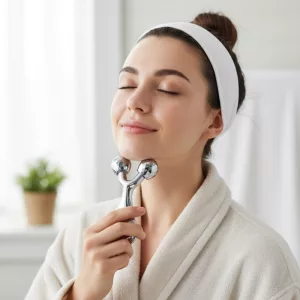 Never thought I’d enjoy skincare this much! Rolling this tool over my chin and forehead is the best way to end my day.
