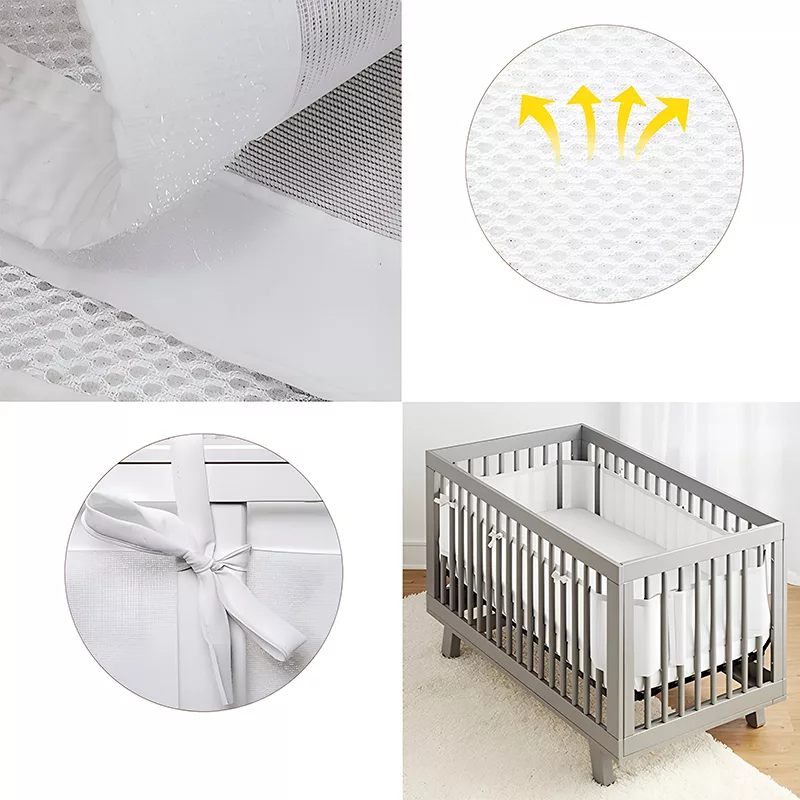 The bumper is made from mesh material that allows for optimal airflow. It reduces the risk of overheating, guaranteeing your baby's comfort.