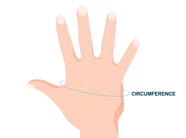 - 1. Wrap the measuring tape around your palm, just below the knuckles.