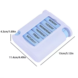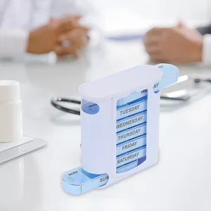 This pill case keeps me from missing my medication every day. The little boxes are easy to open, and I love how clear the letters are.