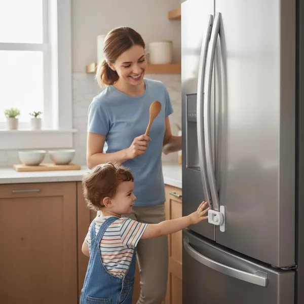 I use this fridge lock at my daycare. It fits different door styles, holds strong all day, and parents love knowing kids can’t reach leftovers or glass jars.