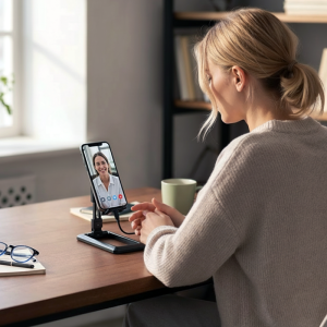 I use the holder for video calls with my friends. It stands up anywhere, holds my phone tightly, and I don’t have to worry about it sliding off.