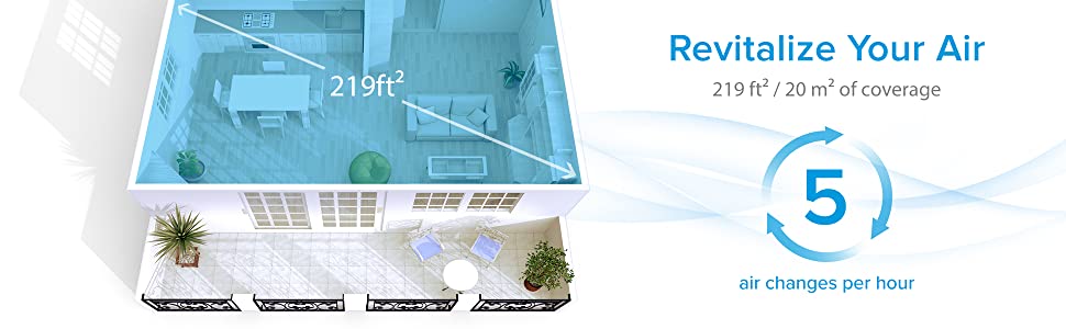 Rapidly refines the air in a room by circulating it more than four times per hour.