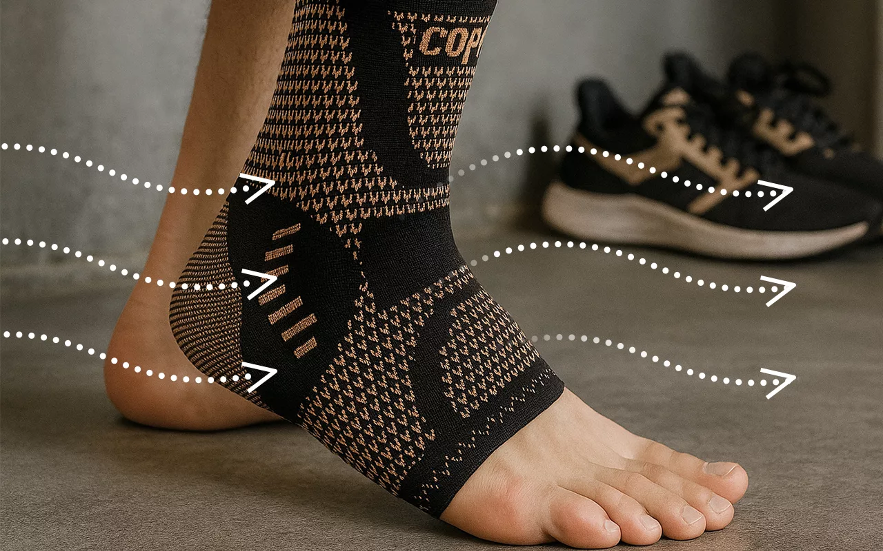 Copper-infused fabric keeps feet dry and fresh throughout the day. It prevents unpleasant smells while allowing the skin to breathe easily.