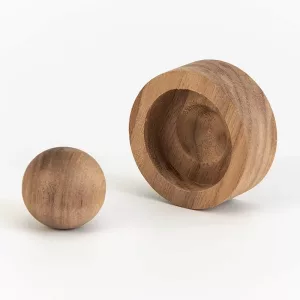 Warm wood tones suit modern or classic interiors beautifully. The spherical shape brings a touch of style to any small area.