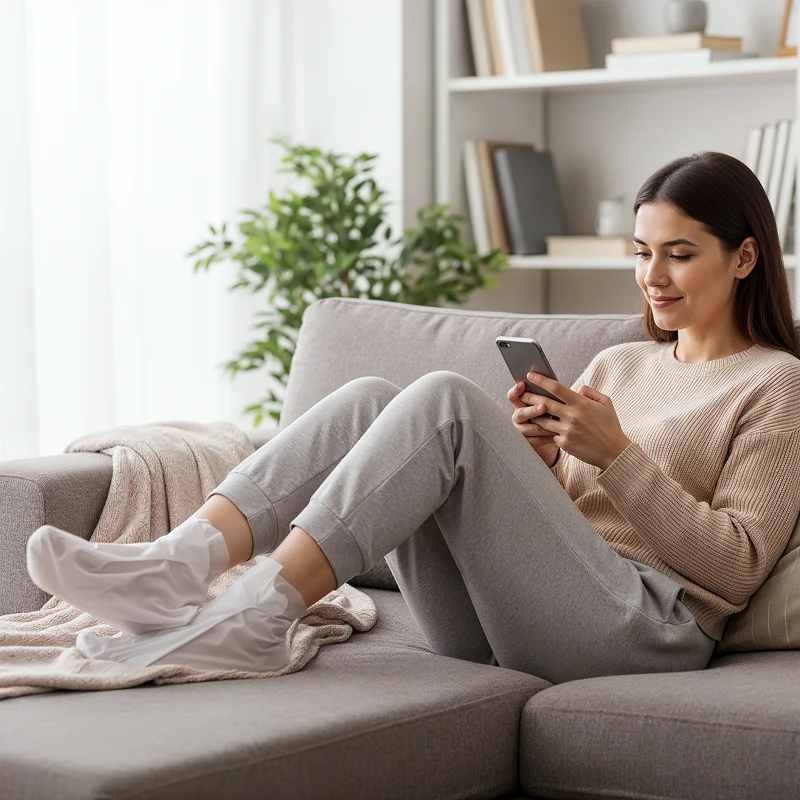 Slip on Ortorex foot mask socks and carry on with your daily tasks easily. No harsh scrubbing or salon visits needed for gentle renewal at home.