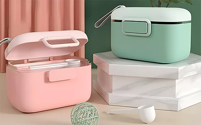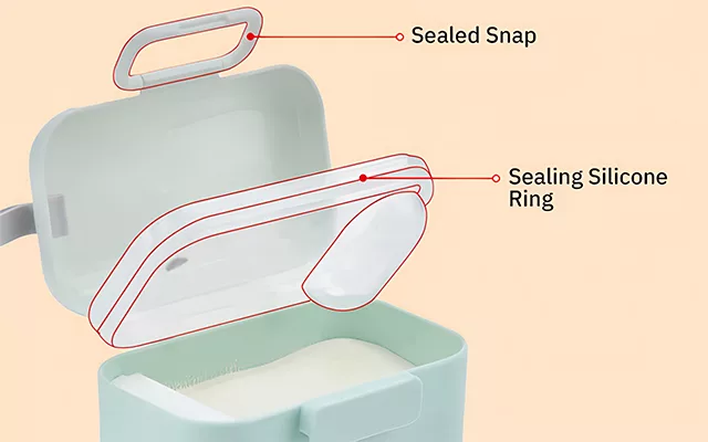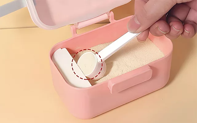This milk powder container ensures consistent servings with zero guesswork. The included spoon has its own compartment in the box, fitting perfectly inside.
