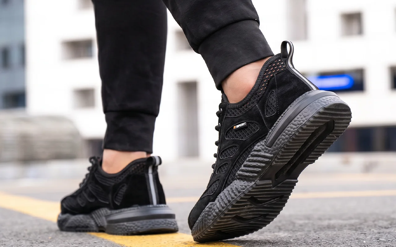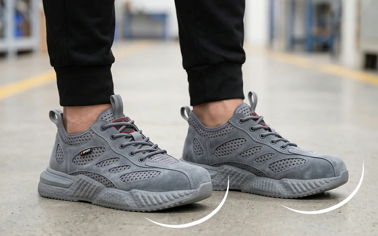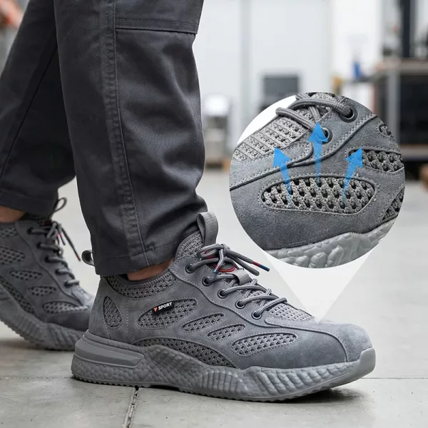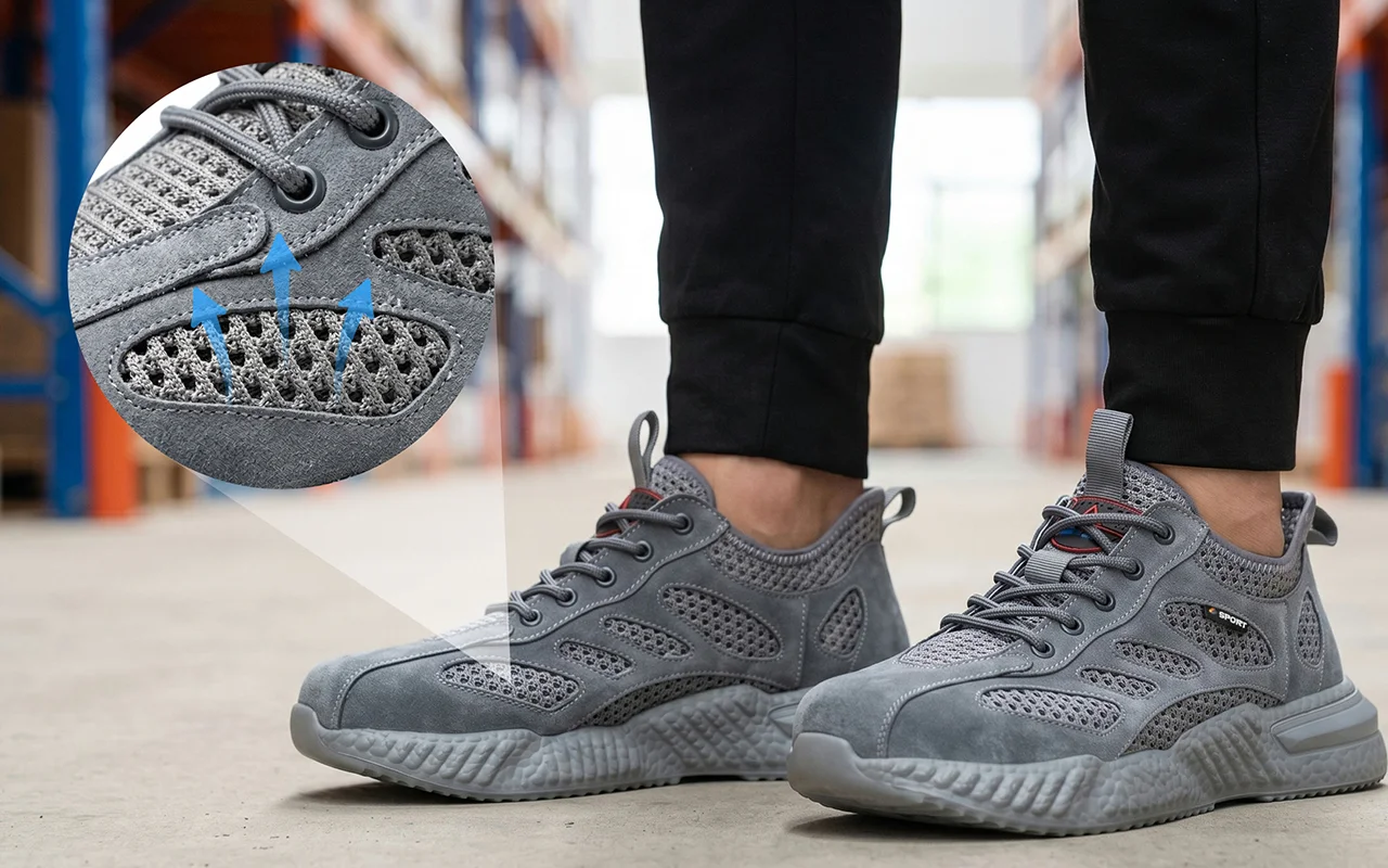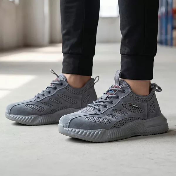Bought these work sneakers for my warehouse job. My feet stay cool, toes feel safe around pallets, and they’re light enough for ten-hour shifts.