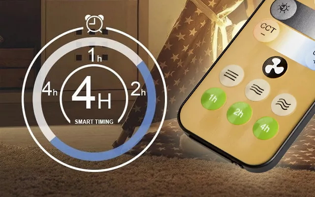 Set the ceiling fan to run for 1, 2, or 4 hours to match your schedule.
