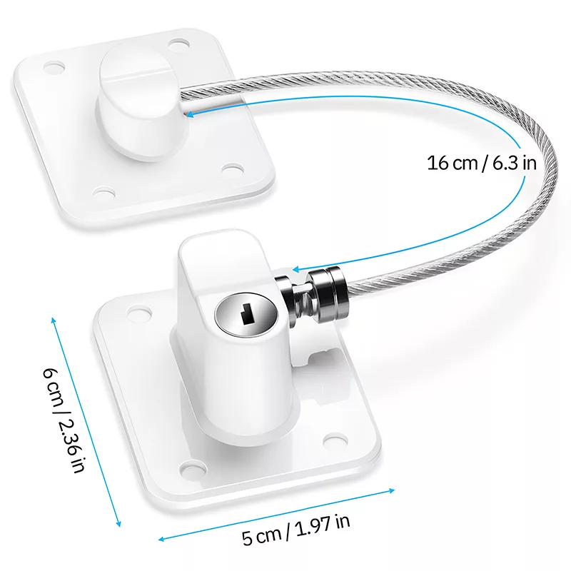Our safety lock stays firmly attached to the surface, resisting pulls and tugs. Installation takes seconds with no tools required.