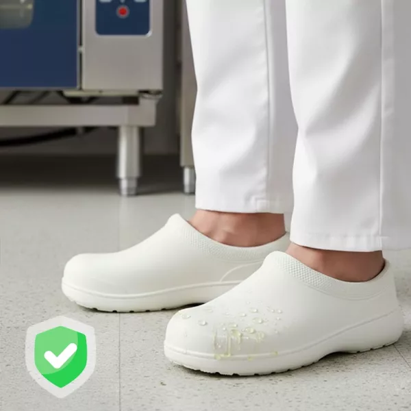 Super easy to clean after every shift. My feet used to ache, but with these kitchen shoes, I can stand pain-free till closing.