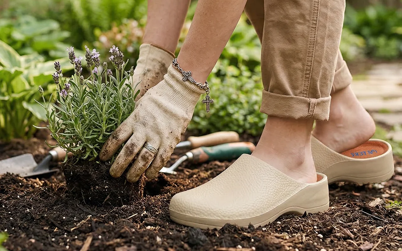 Supportive design keeps pressure away from tired arches. Soft lining reduces soreness so you can stand longer in the garden or at work.
