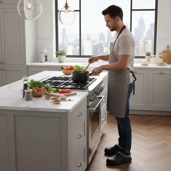 Outer layer repels spills to keep feet dry and clean. No worries about splashes in the kitchen or hallway.