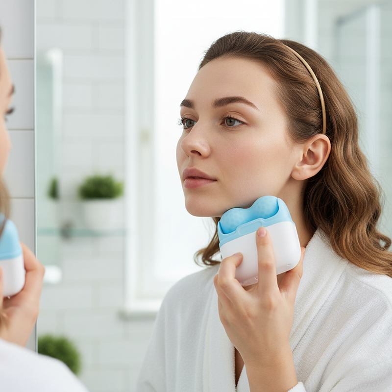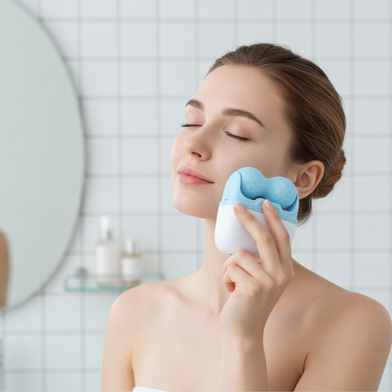 Chilled face roller helps my cheeks feel less puffy.