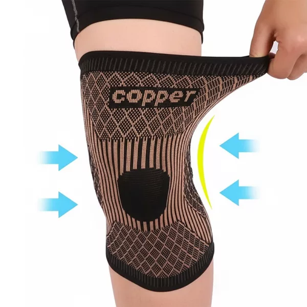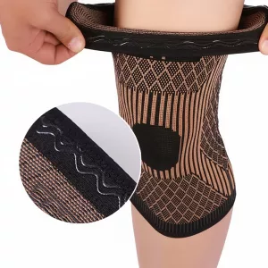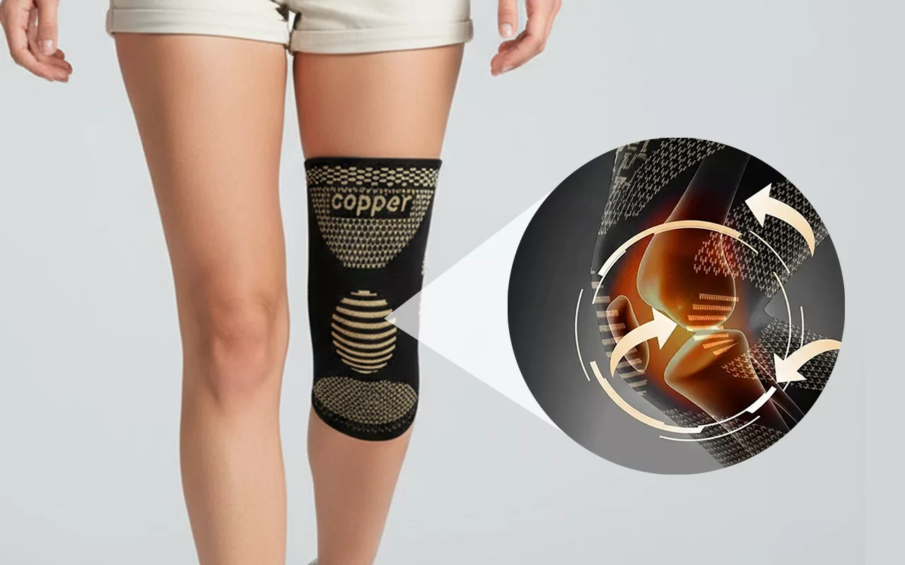 The copper support lets me keep up with my grandkids without worrying about my knee aching or slipping down. Fits comfortably under jeans.