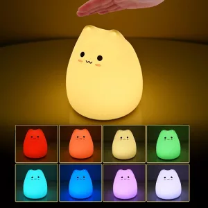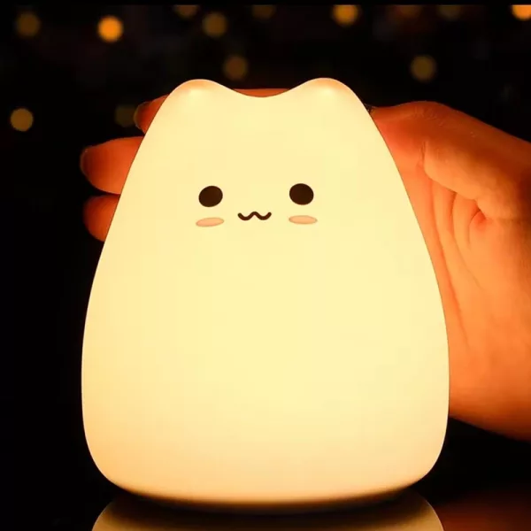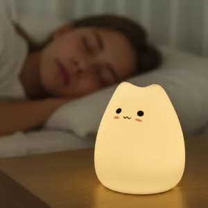 Bought this cute cat lamp for my daughter. She taps it herself at bedtime, picks a colour, and settles down much faster now.