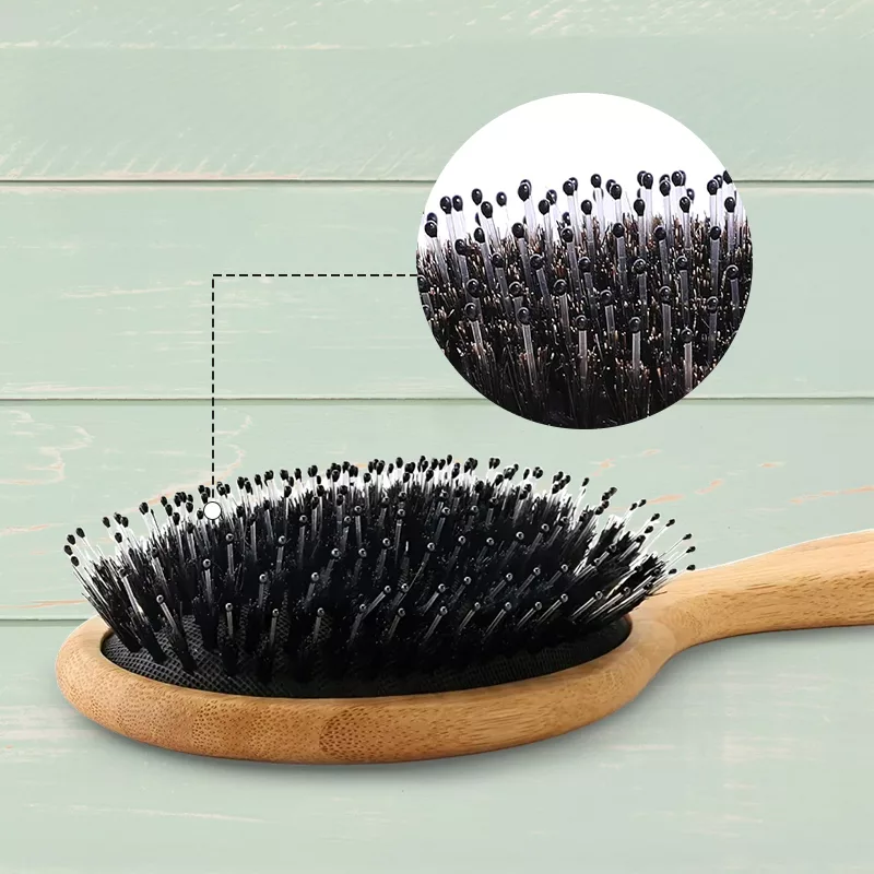 Boar bristles distribute oils evenly from root to tip. This helps hair stay silky, shiny, and less prone to breakage.