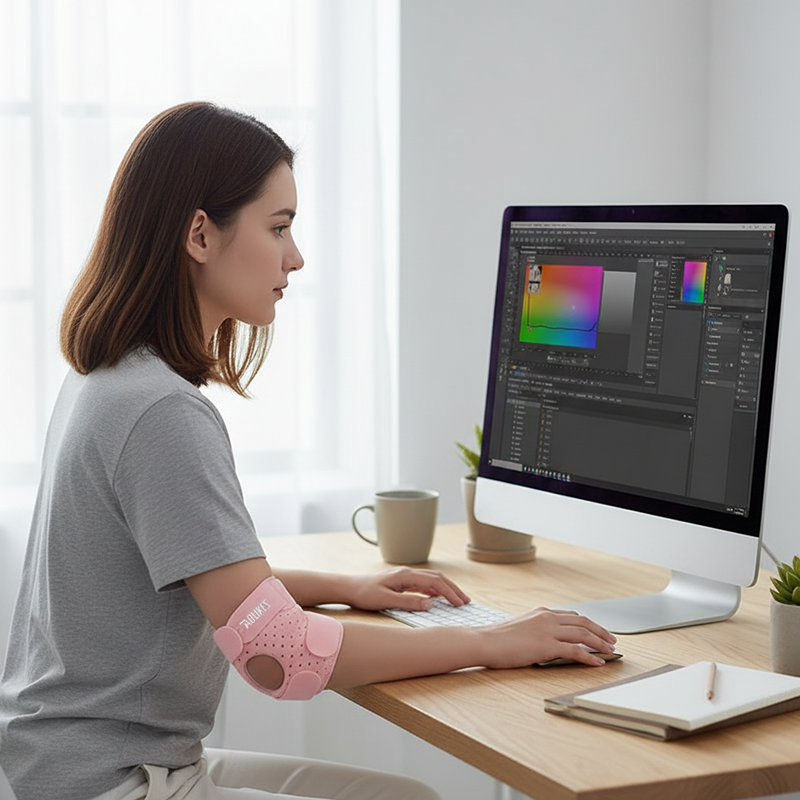 I wear this support at work and while cycling. Super lightweight, and my arm doesn’t feel hot even after hours. Definitely helps me keep moving.