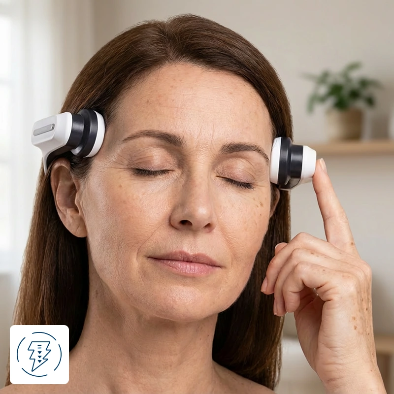Use the Ortorex temple massager anywhere, at home or the office. Lightweight design means you can bring relief wherever you go.
