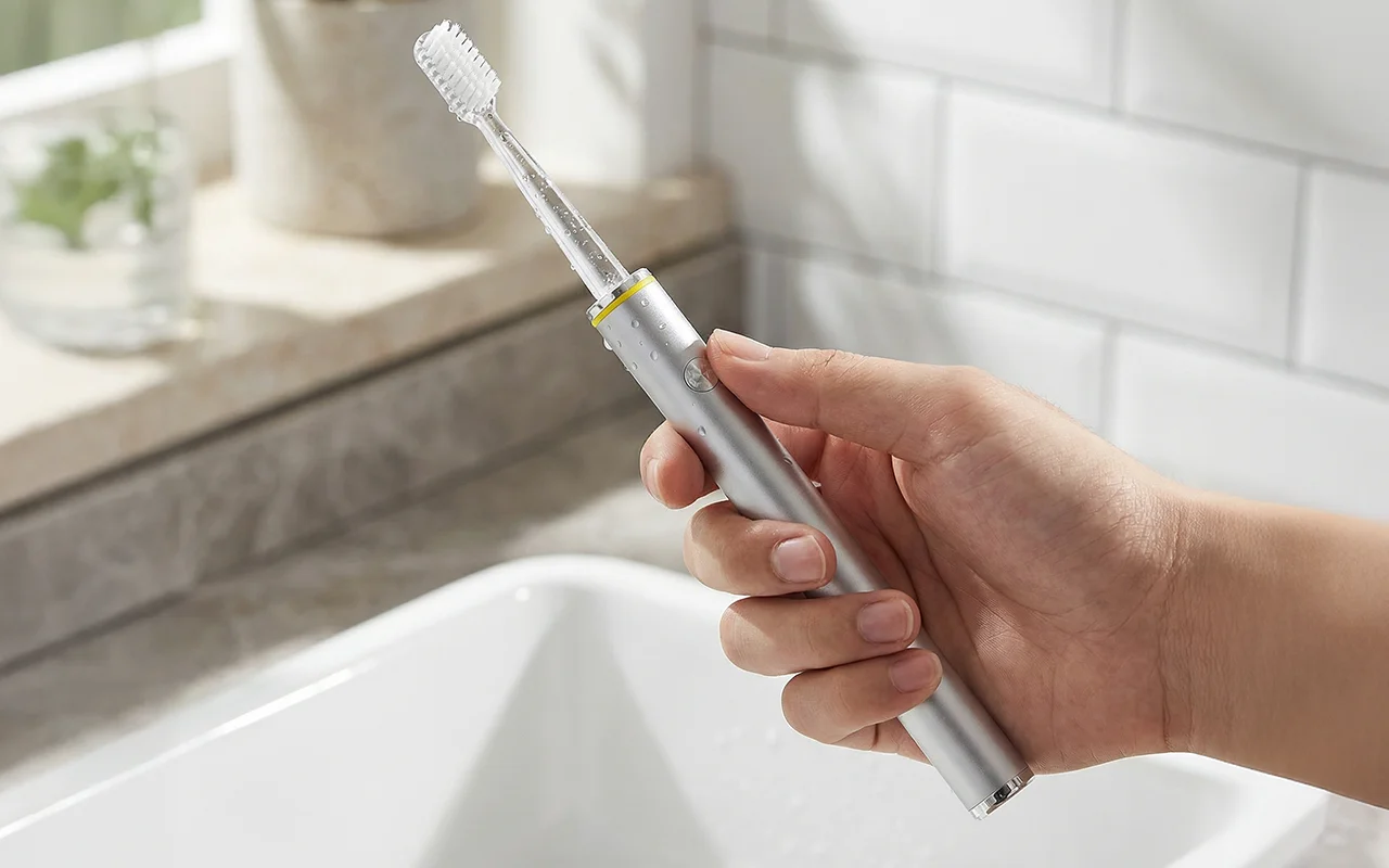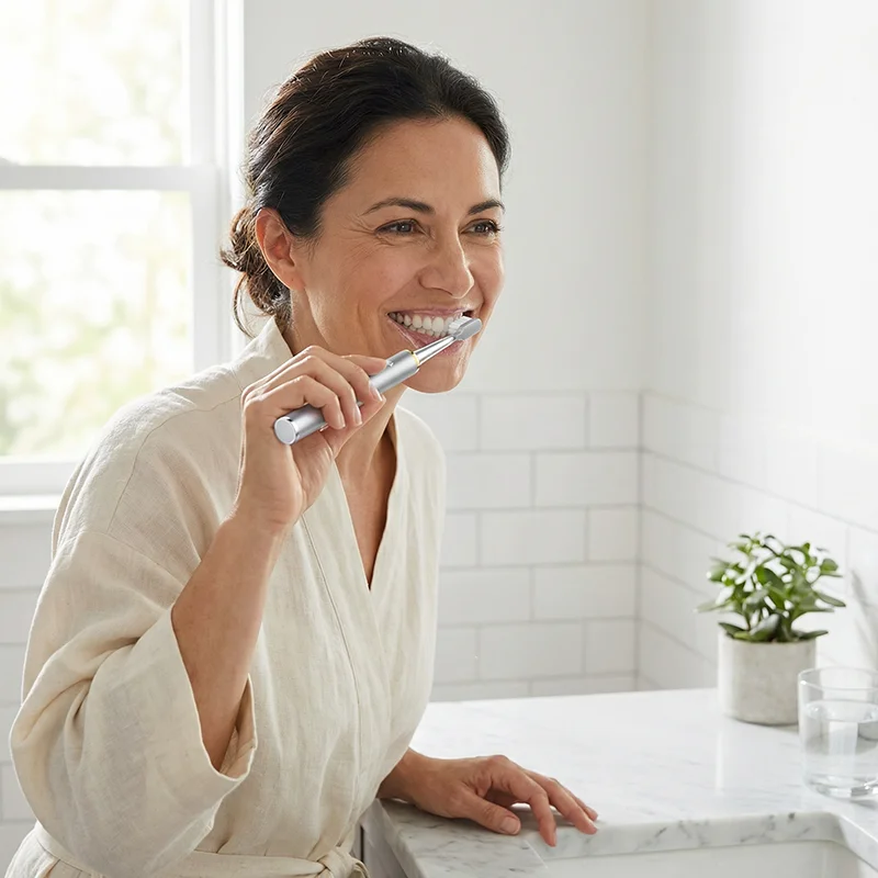 This sonic brush gets the job done so quickly! My mornings are faster, and I still finish with clean, shiny teeth. Nice and lightweight.