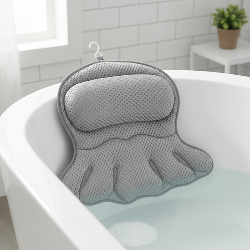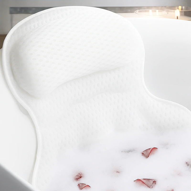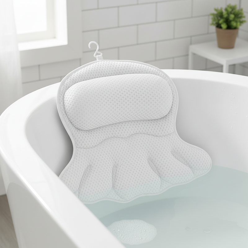 I’m always in the tub after soccer and this mesh pillow helps my muscles relax. No sliding at all, just good support—every bit worth it.