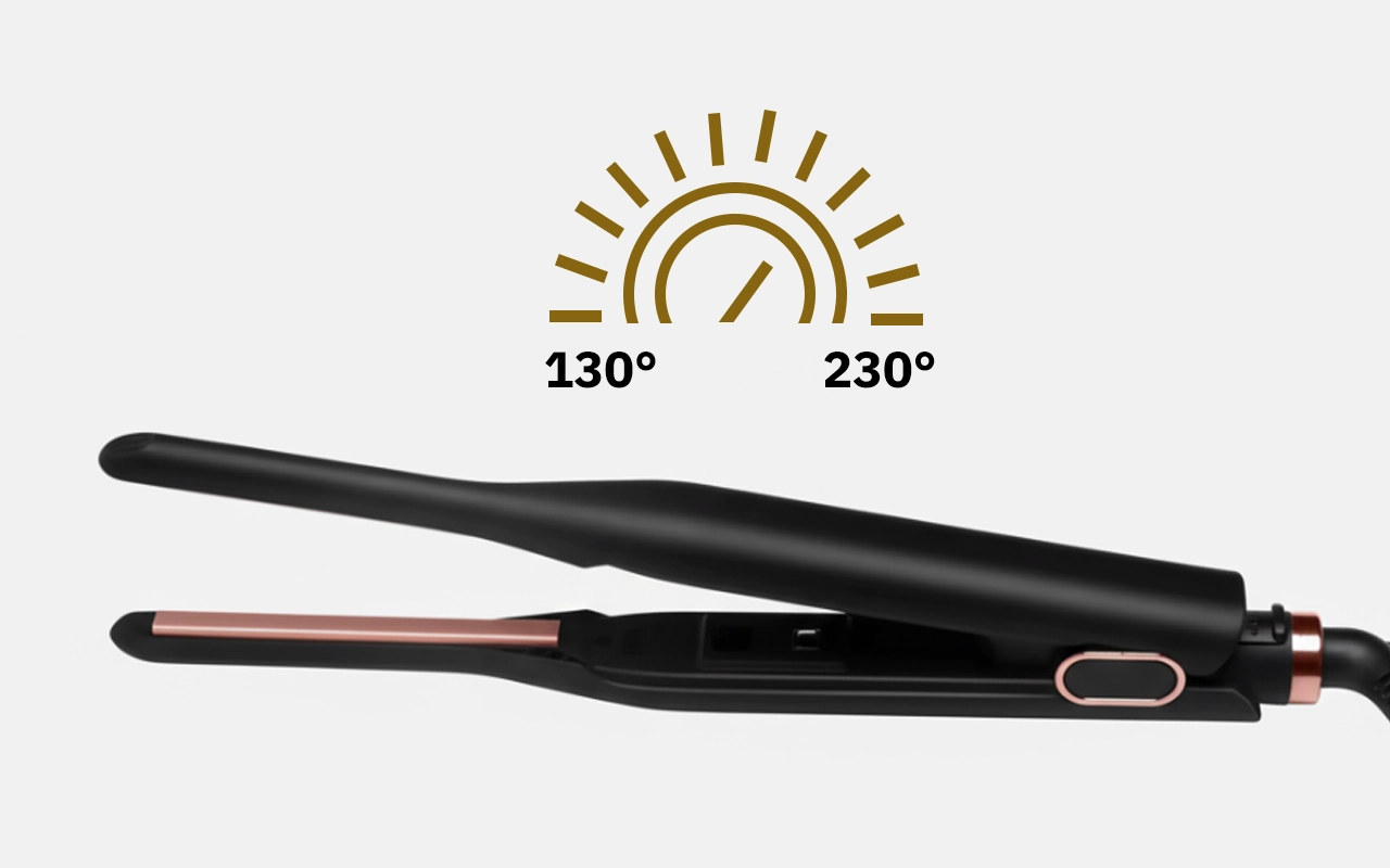 Easily set the temperature for various styles. Fine plates allow you to reach roots, providing a neat finish.