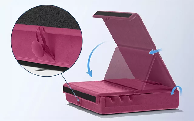 Our tablet pillow allows for easy packing when travelling or storing at home. It opens and closes in seconds with no effort.