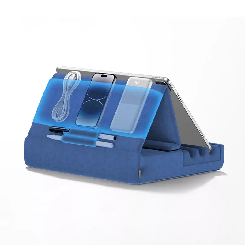 Keep your hands free while reading, watching, or video calling with the Ortorex tablet holder. The soft yet firm base ensures your device stays in place without sliding. A handy side pocket can hold your small items within reach.