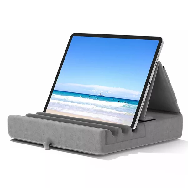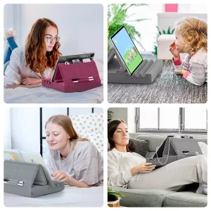 This pillow stand is so comfy and soft on my legs. I watch movies in bed and my tablet never slips. Love the little pocket for my earphones!