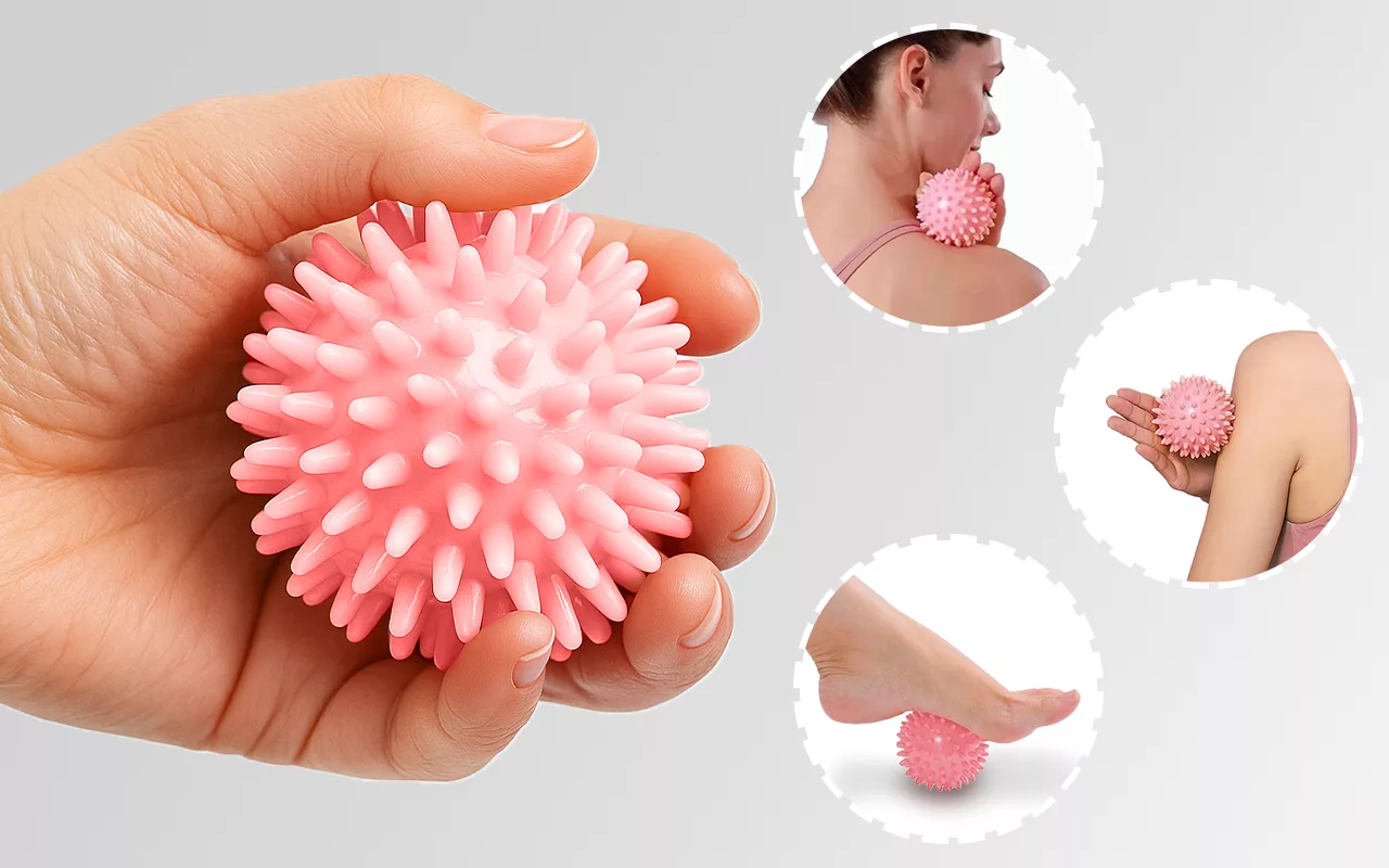 The Ortorex plantar ball is designed to relax the feet, back, and neck.