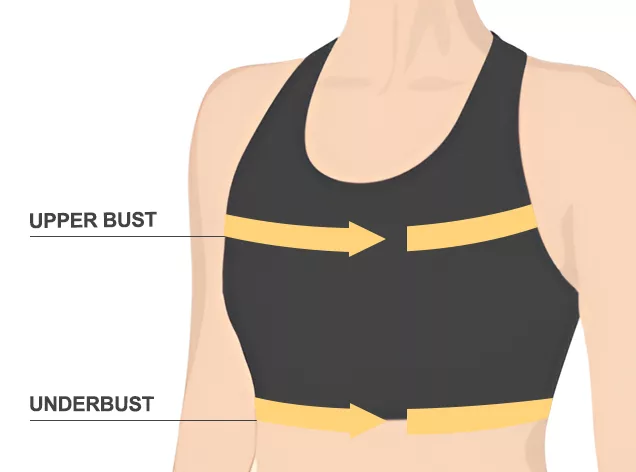 - 2. To measure your upper bust, wrap the measuring tape around your torso, just under your armpits and over the top of your bust.