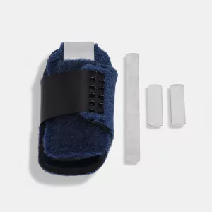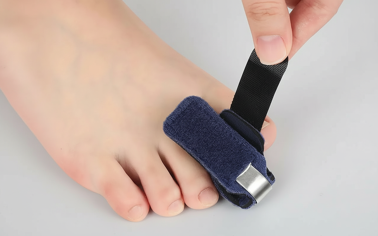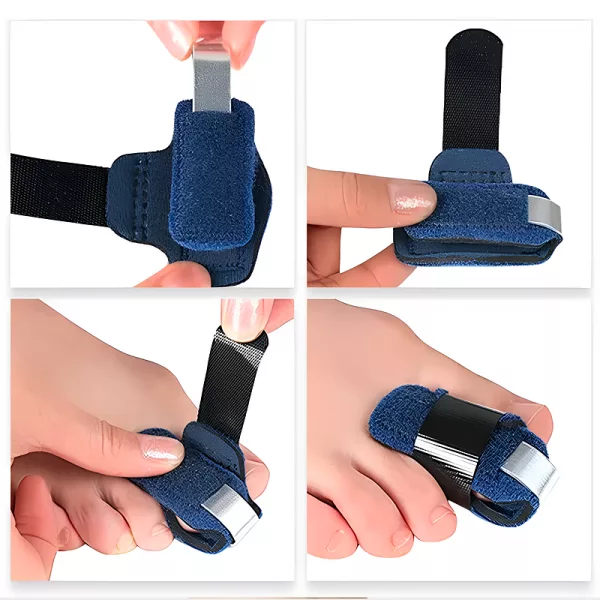It’s simple to put on and take off. The metal strip inside helps keep my toe set, and I can even sleep with it on. Love the ease of use.