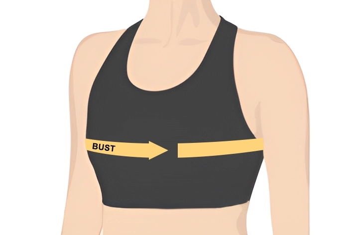 - 2. To find the bust measurement, wrap the measuring tape around the fullest part of your bust. Make sure to keep the measuring tape horizontal. Hold securely, not tightly.