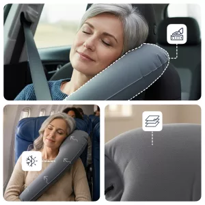 I use my inflatable pillow every time I visit my family by train. No more stiff shoulders!