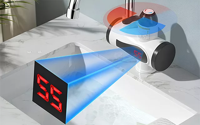 Regulate the water warmth to your preference with a turn of the knob. A digital screen shows real-time temperature for precise adjustments.