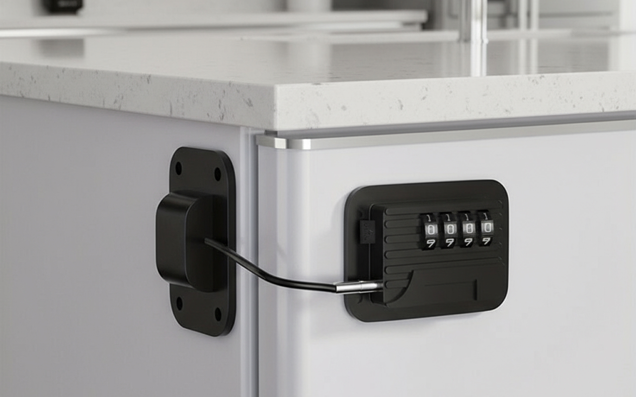 Secure fridges, drawers, or even windows using one simple solution. Ortorex adapts perfectly for kitchen, bathroom, or utility room needs.