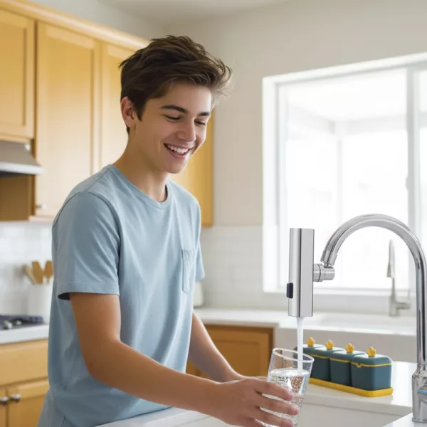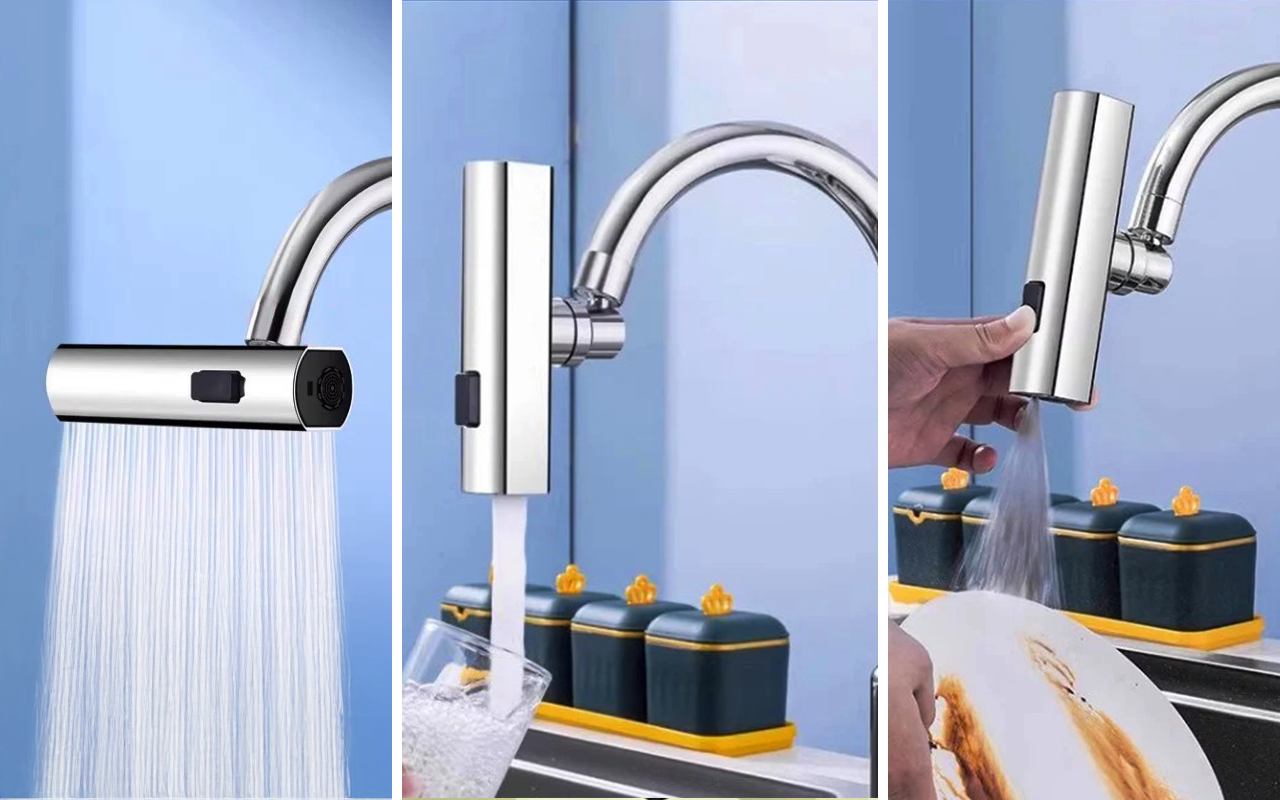 No more splashes! I can switch from a gentle rinse for fruit to a strong spray for pans in one second. Even my kids can use it.