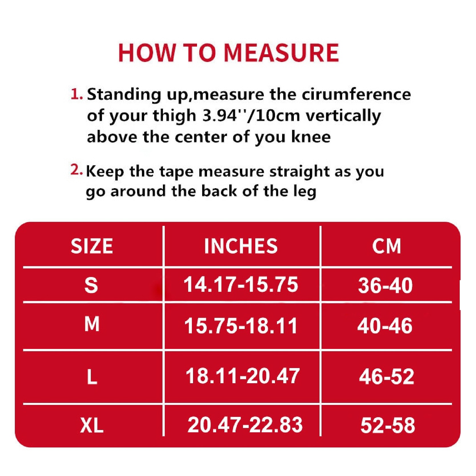 - Select the compression knee brace size that matches your leg measurement, following the size guide table.
