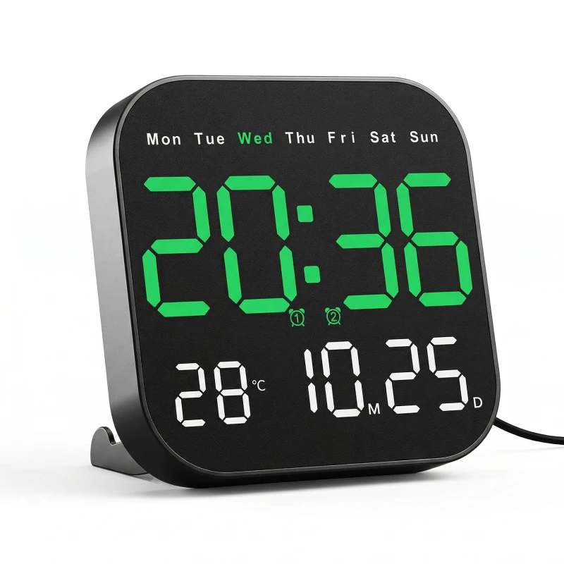 Read numbers fast from across busy spaces. Pick ten light levels for day, evening, or sleep.