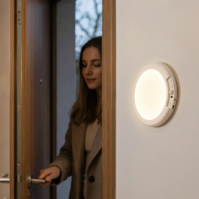 We put this in the stairway. It senses us right away, even when our hands are full. One charge lasts longer than I expected.