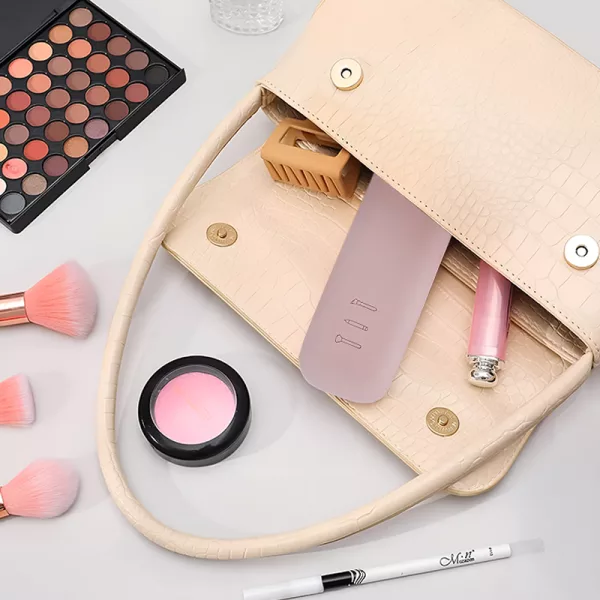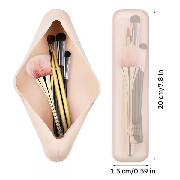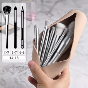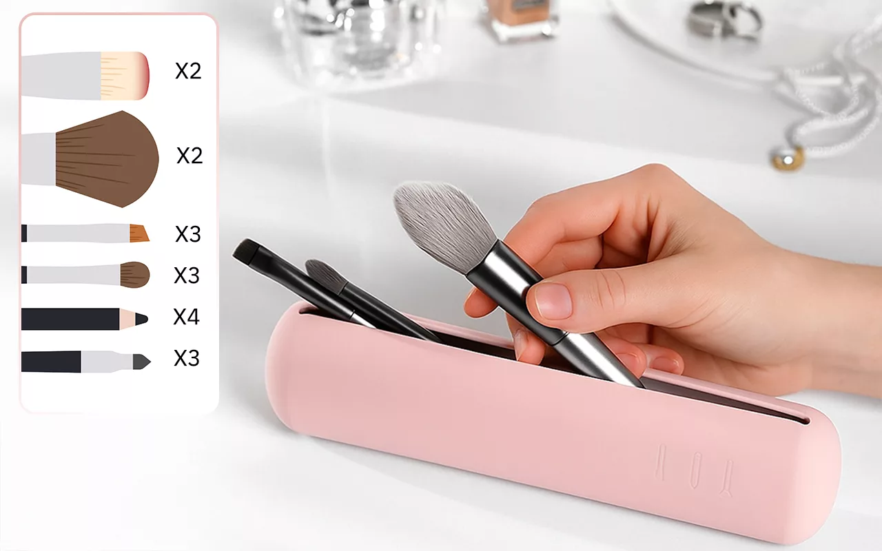 The bag holds my whole brush set. It’s easy to clean and I carry it everywhere. No weird smells, just smooth silicone.