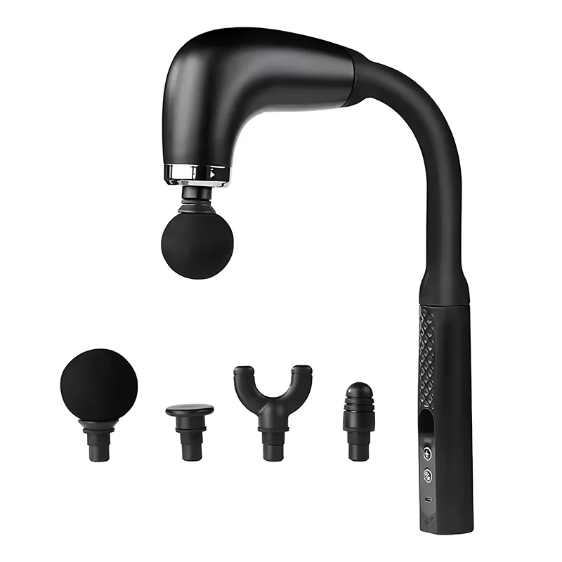 This handheld massager comes with multiple attachments. Each of them is designed to target different muscle groups.