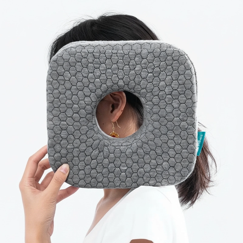 The hole fits my ear perfectly, no matter how I turn. Soft fabric feels nice too. I wish I found this little pillow sooner.