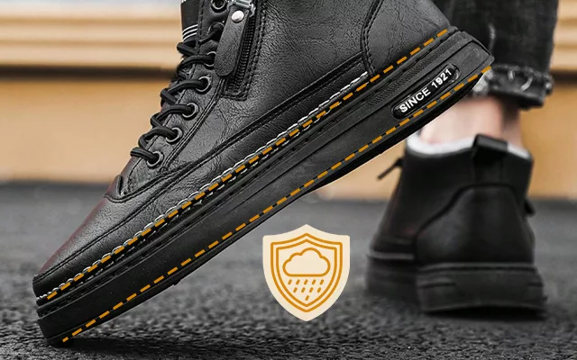 Thick sole shields from cold pavements and damp ground. Rainy days pose no trouble, as feet remain dry and shielded.