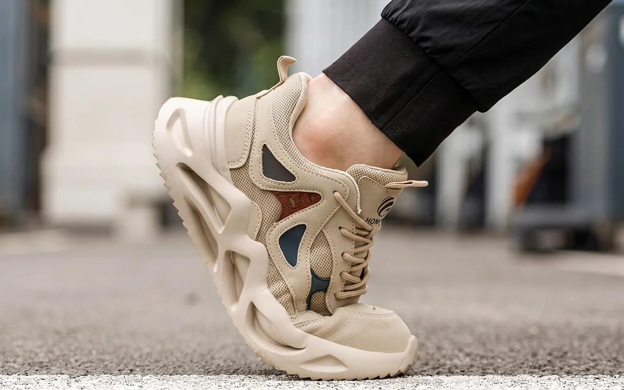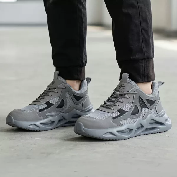 Bought these for long warehouse shifts and my feet finally don’t ache at night. Toes feel safe, mesh keeps them cool, and they look like regular trainers.