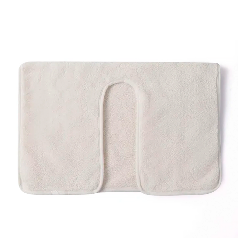 The U-shape fits perfectly around my face, never slides off. It soaks up water fast, and my skin never feels irritated. Washed it a lot, stays soft!