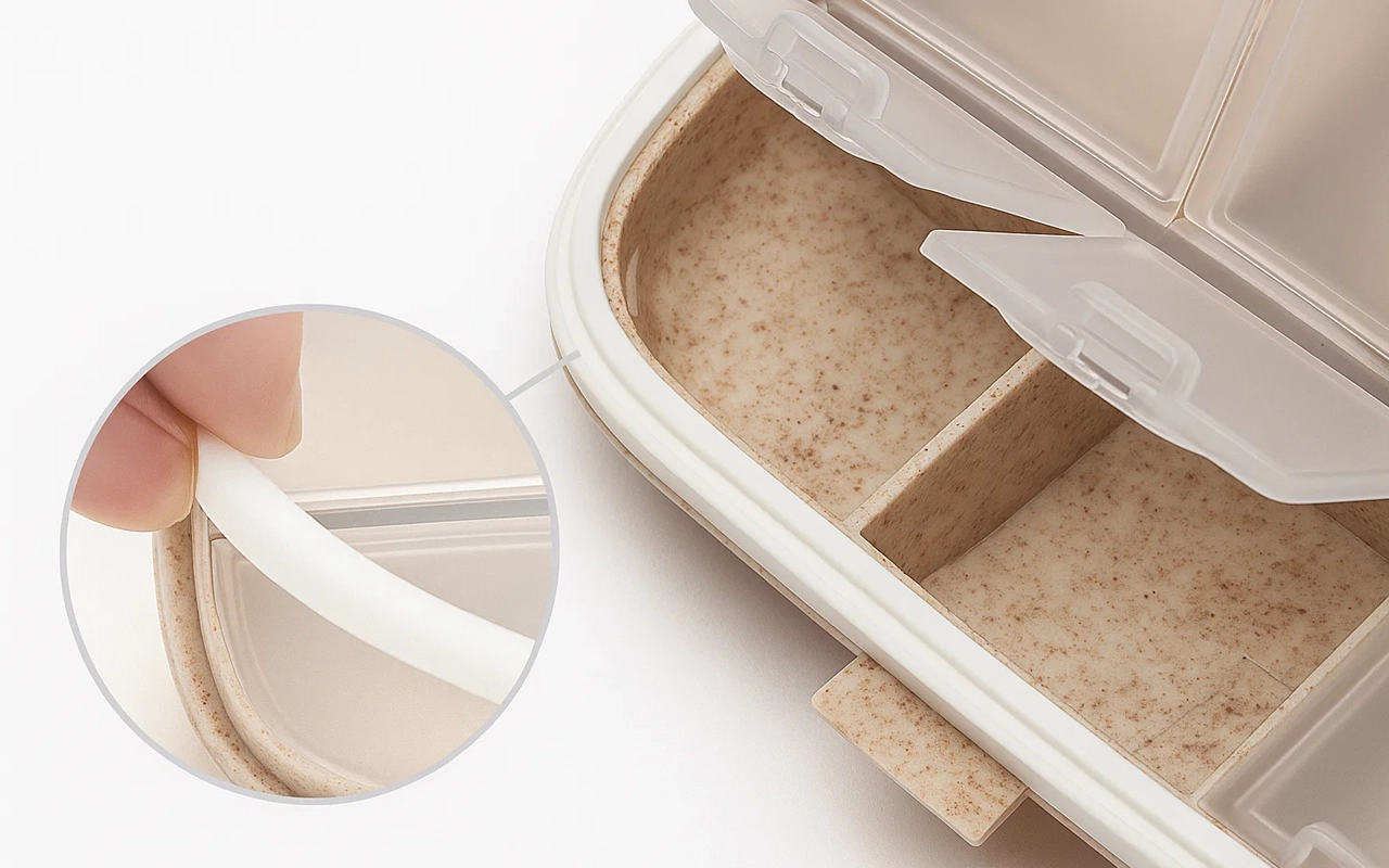 Each compartment clicks shut, stopping spills or moisture from getting inside.