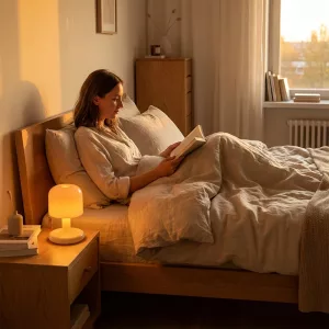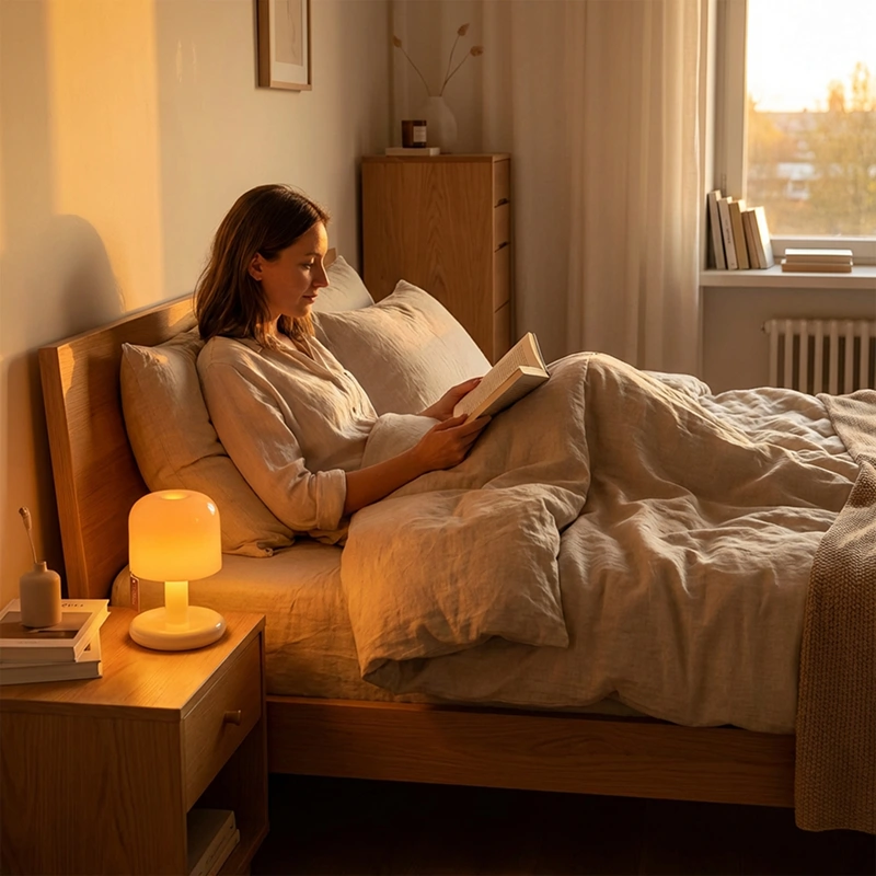 I charge the lamp during dinner and it lasts through the night. The warm tone feels cozy and helps me fall asleep faster.